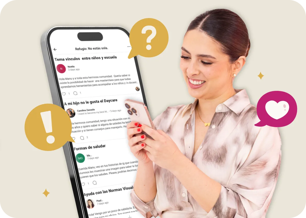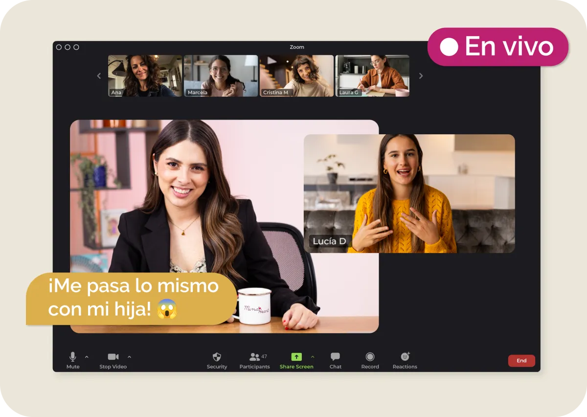 Encuentros mensuales en vivo para conversar con Manuela y otras familias.