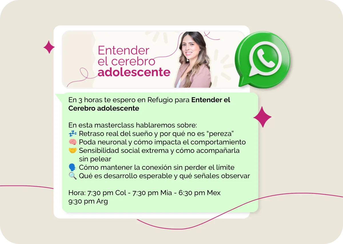 Recibirás recordatorios a tu Whatsapp para que n te pierdas nada de Refugio